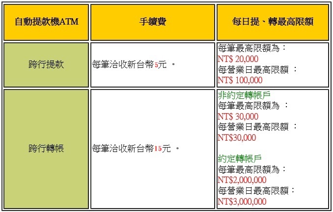 - 存期別為一個月、三個月、六個月、九個月至一年期。